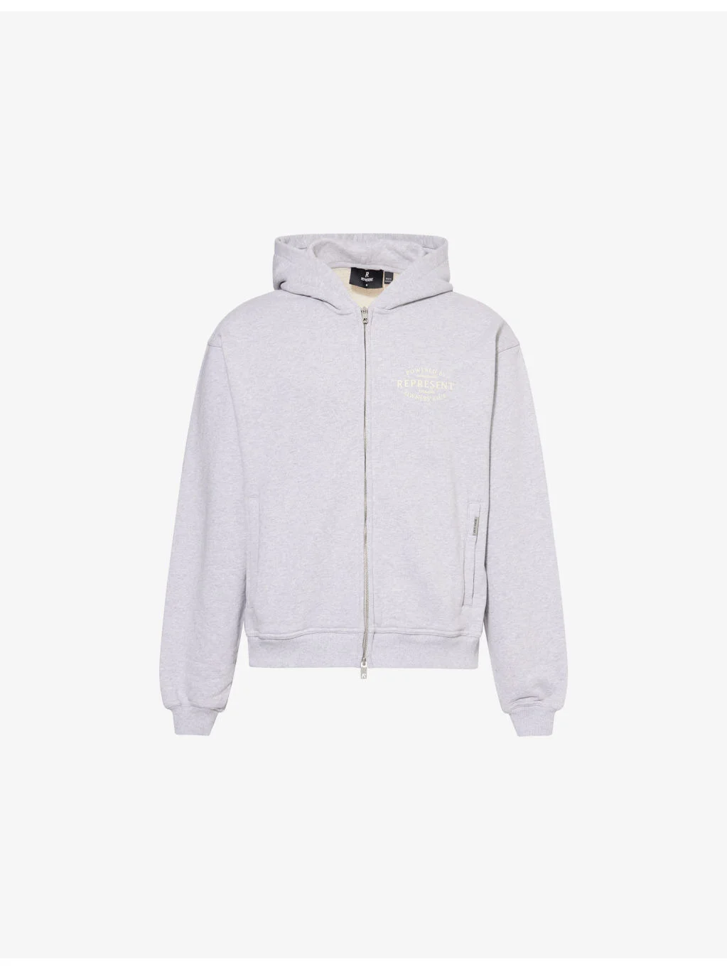 PRODUCT DETAILS - Represent cotton-jersey hoody - 100% cotton - Zip fastening - Regular fit, hood, long sleeves, stamped logo print at chest and back, slip pockets at front, brand metal plaque at pocket, branded hardware, ribbed trims - Machine wash cold - Made in Portugal - Model is 6ft 2in/1.88m and wears a size medium - Midweight, slight stretch Ref: R04466743