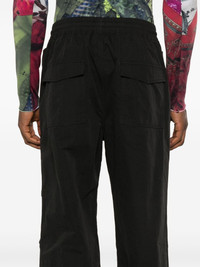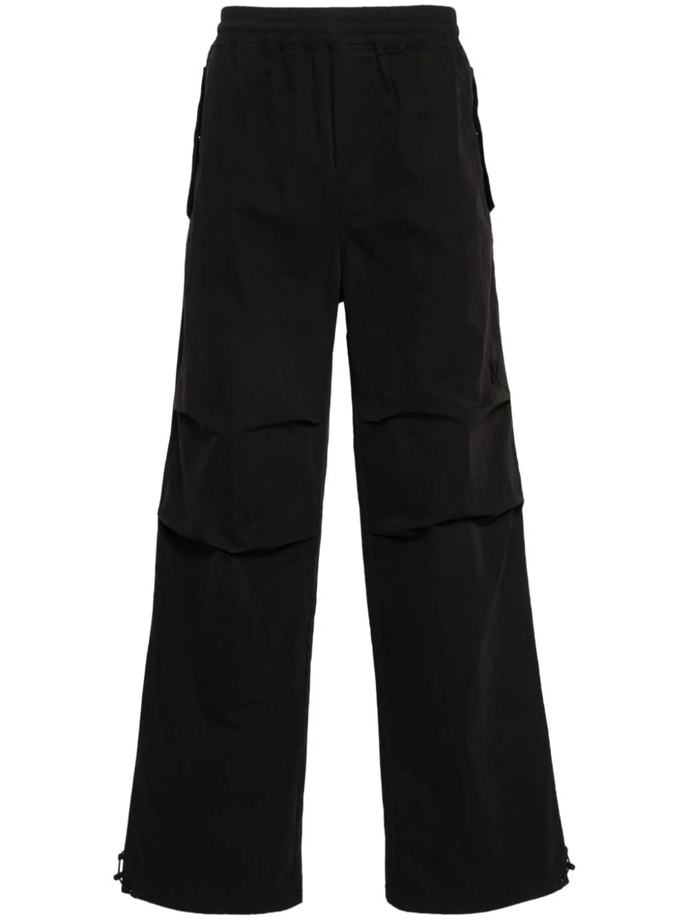 parachute baggy trousers Highlights - Black - Cotton blend - Ripstop texture - Elasticated waistband - Two side flap pockets - Embroidered logo to the front - Drawstring cuffs - Two rear flap pockets - Internal drawstring fastening waist Imported Composition Cotton 76%, Nylon 24% SIZE & FIT FittingInformation Designed for a relaxed straight leg, allowing a comfortable and loose fit over the leg The internal drawstring at the hem allows for fitted preferences at the ankle Made from a midweight non-stretch fabric This piece fits true to size – take your usual size