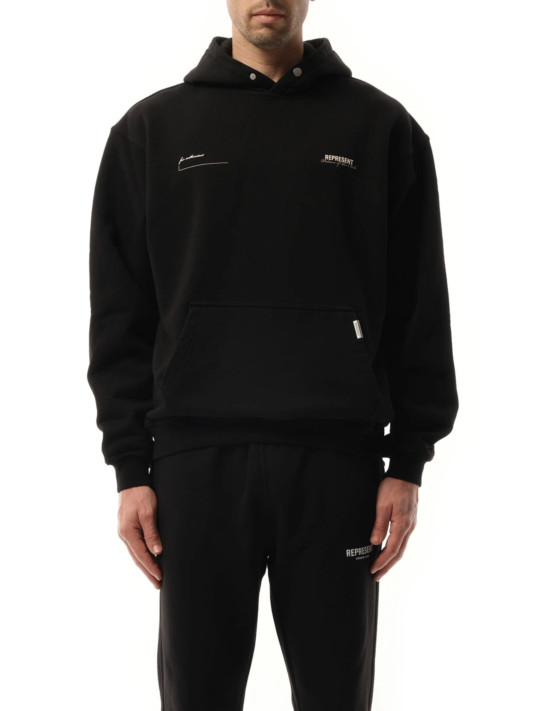 Stay warm and stylish with our Patron of the Club Hoodie in Black. Made with durable fabric and a comfortable fit, this hoodie is perfect for any casual outing or workout session. Show your support for your favourite club while looking effortlessly cool. - Composition: 95% Cotton, 5% Elastane - Logo print at the chest and to the rear - Classic hood - Ribbed cuffs and hem - Front pouch pocket Model is 192 cm and wears size M SKU: MLM4270 001