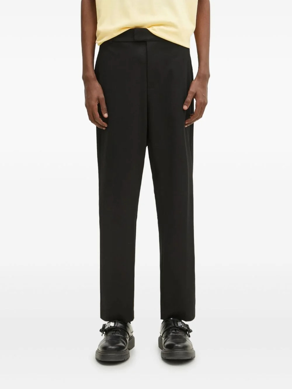 pleated trousers Highlights - Black - Pleated front - Straight leg - Mid-rise waist - Button fly - Welt pockets Imported Composition Polyester 64%, Viscose 32%, Elastane 4% Washing instructions Read Manufacturer Guidelines