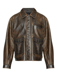 pocket-zip leather jacket Highlights - Browm - Point collar - Front zip fastening - Two front flap pockets - Chest zip-pocket - Long sleeves Imported Composition Leather 100% Washing instructions Read Manufacturer Guidelines