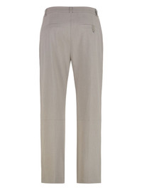 pressed-crease trousers Highlights - Almond beige - Hook and zip fly fastening - Two side slit pockets - Two rear welt pockets - Belt loops Imported Composition Polyester 64%, Viscose 32%, Spandex/Elastane 4%