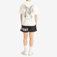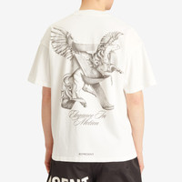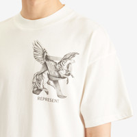 The Represent Elegance in Motion t-shirt brings together effortless style and bold design. Made from medium-weight jersey cotton, this slightly oversized tee features dynamic ‘Elegance in Motion’ graphics on the front and back, showcasing a illustration of a Pegasus with signature Represent branding – a statement of the brand’s powerful design philosophy. - 100% Cotton - Oversized Fit - Pegasus Graphic - Ribbed Crewneck - Printed Branding - Represent Logo Metal Bar - Product Code: MLM41066-72