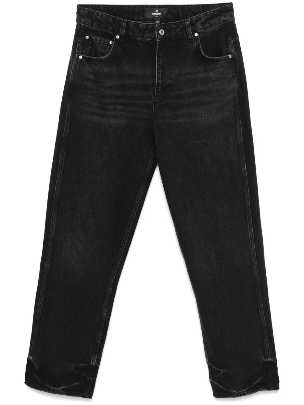 R2 straight-leg jeans Highlights - Black - Cotton - Washed denim - Distressed effect - Straight leg - Concealed fly and button fastening - Mid-rise - Belt loops - Classic five pockets - Whiskering effect at the thighs - Logo plaque to the rear - Embroidered logo to the rear Made in United Kingdom Composition Cotton 100% SIZE & FIT Model measurements Height 6 ft 1 in(1.85 m) Bust/Chest 35.82 in(91 cm) Hips 37.79 in(96 cm) Waist 29.13 in(74 cm) FittingInformation Designed with a straight leg, these jeans allow for an unrestricted and comfortable fit over the leg Sturdy and hard-wearing, this denim piece offers no stretch