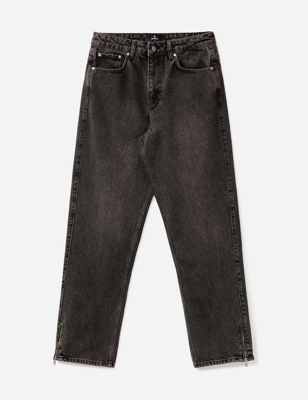 - Represent - R2S Split Denim - Made of black denim with a vintage effect - Relaxed fit - Zip fly with logo button - Belt loops - Initial logo rivets - Initial logo stitch on back pocket - 5-pocket - Color: Soot - Material: 100% Cotton - See more Jeans and Clothing - Model wears size 32 - Model measures: Height 186cm, Chest 34”/86cm, Waist 28”/71cm, Hip 36”/91cm - Vendor Code: MLM100332