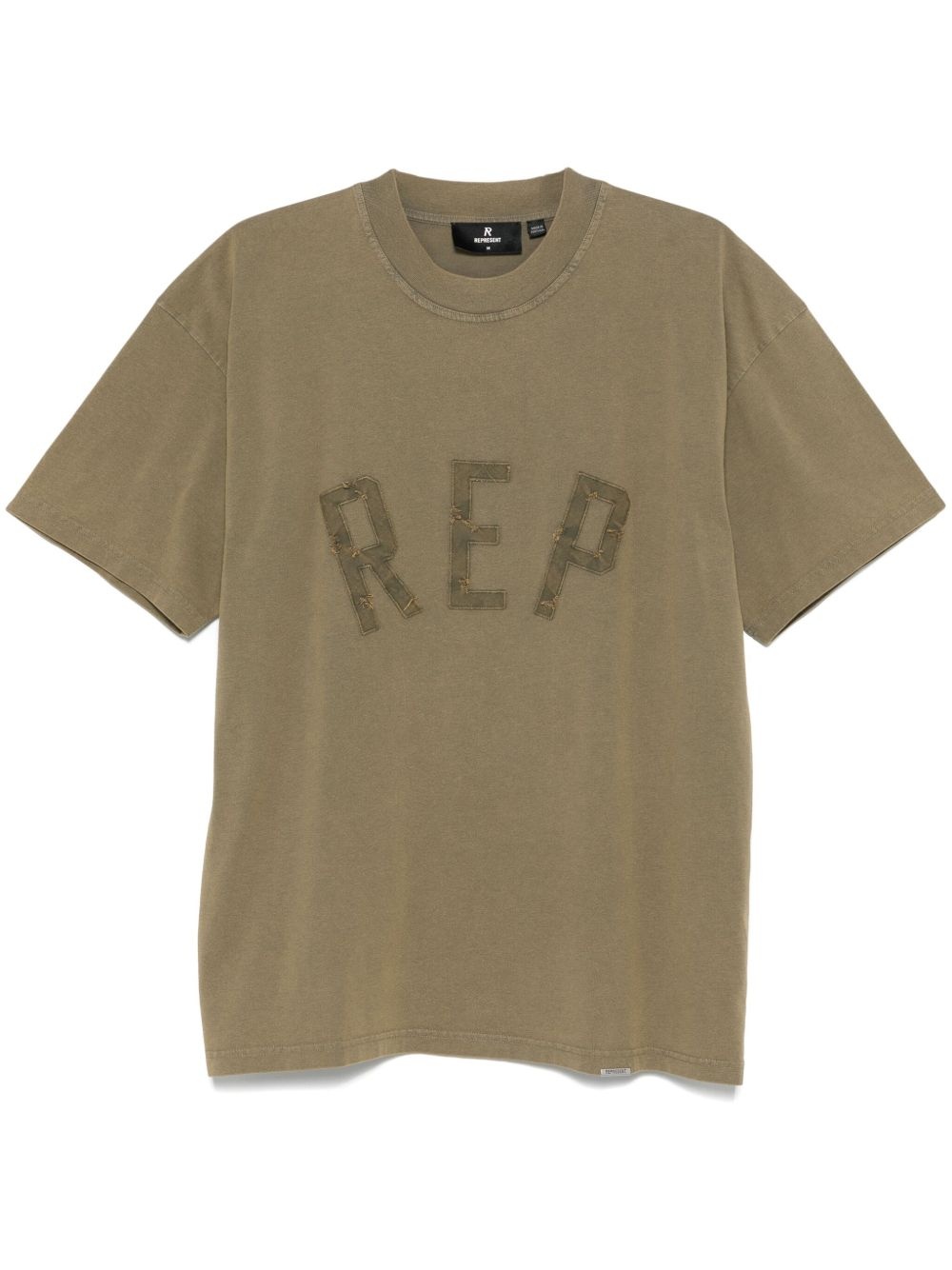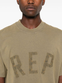 REP-applique T-shirt Highlights - Light olive green - Cotton - Jersey texture - Faded effect - Distressed effect - Rep applique detailing - Crew neck - Drop shoulder - Short sleeves - Straight hem Imported Composition Cotton 100% SIZE & FIT Model measurements Height 6 ft 2 in(1.88 m) Bust/Chest 37 in(94 cm) Hips 36.22 in(92 cm) Waist 29.13 in(74 cm) FittingInformation Designed for a relaxed fit, this piece allows for comfort and movement when worn Made from a midweight non-stretch fabric, this piece offers minimal elasticity when worn