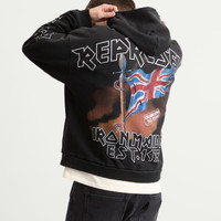 It’s no secret that George and Mike Heaton are longtime heavy metal fans, so Represent’s collaboration with the legendary Iron Maiden just makes sense. Detailed with the iconic Maiden England artwork with band mascot Eddie the Head on horseback, this boxy, washed-out hoodie celebrates 50 years of the era-defining band. - 100% Cotton - 480GSM Loopback Jersey - Vintage Wash - Boxy Fit - Printed Branding - Ribbed Trims - Distressed Cuffs - Metal Hardware - Style Code: MLM100577-04