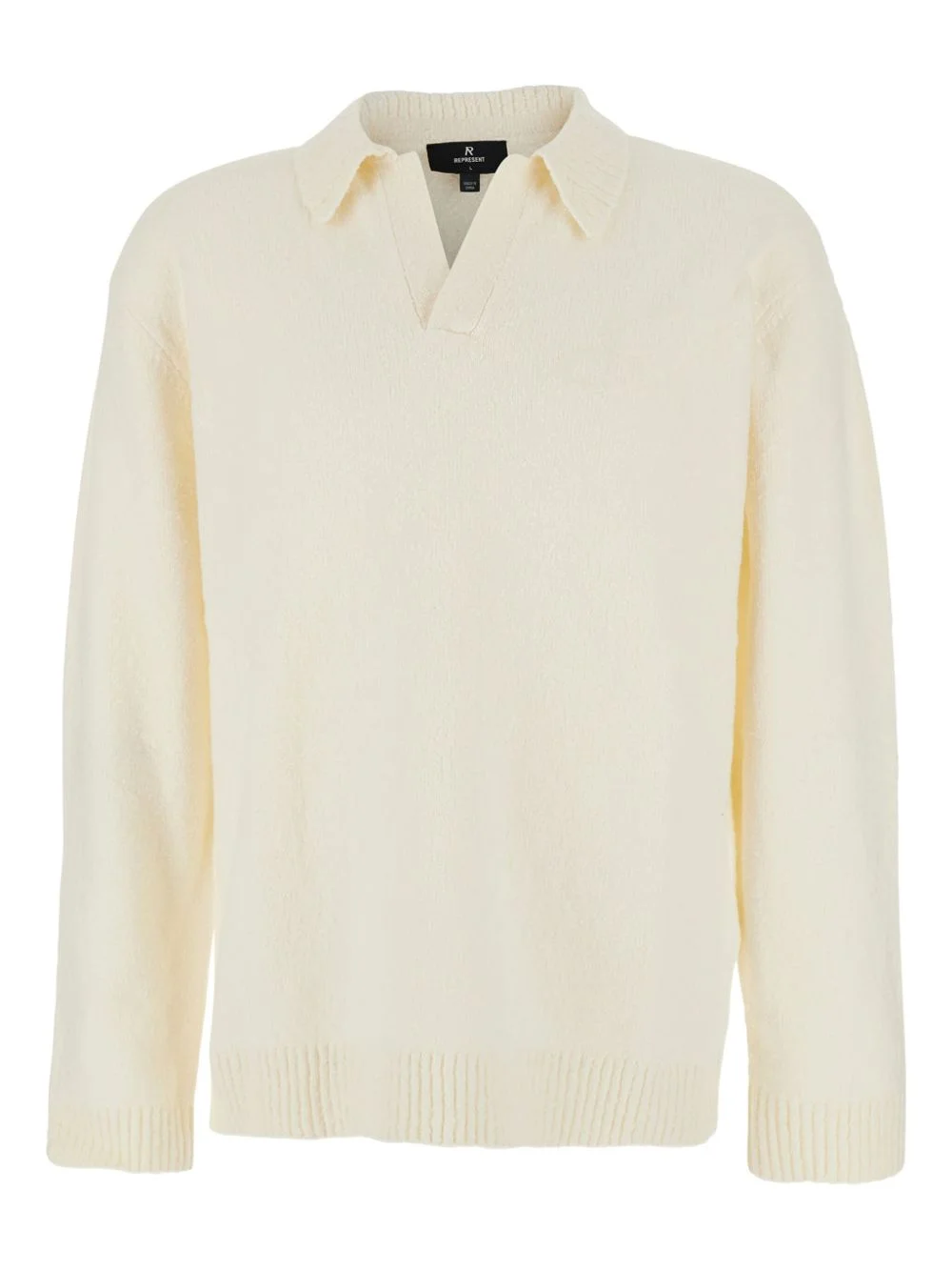 knitted polo sweater Highlights - Ecru - Polo collar - Long sleeves - Ribbed hem - Knitted texture Imported Composition Wool Blend 100% Washing instructions Read Manufacturer Guidelines