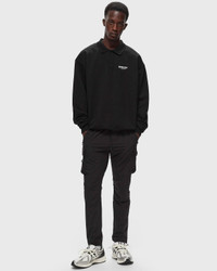 The Represent Owners' Club LS Polo Sweat is a slightly oversized long-sleeved polo sweatshirt made from heavyweight cotton jersey. The jersey polo has a ribbed hem and cuffs and Cobrax press studs on the button placket. It features Represent Owners' Club branding on the chest and back and a metal logo placket at the hem. - Relaxed fit - Loopback jersey - Ribbed trims - Cobrax poppers Article Number: OCM41117-001 Gender: Men Color: BLACK Material: 100% Cotton