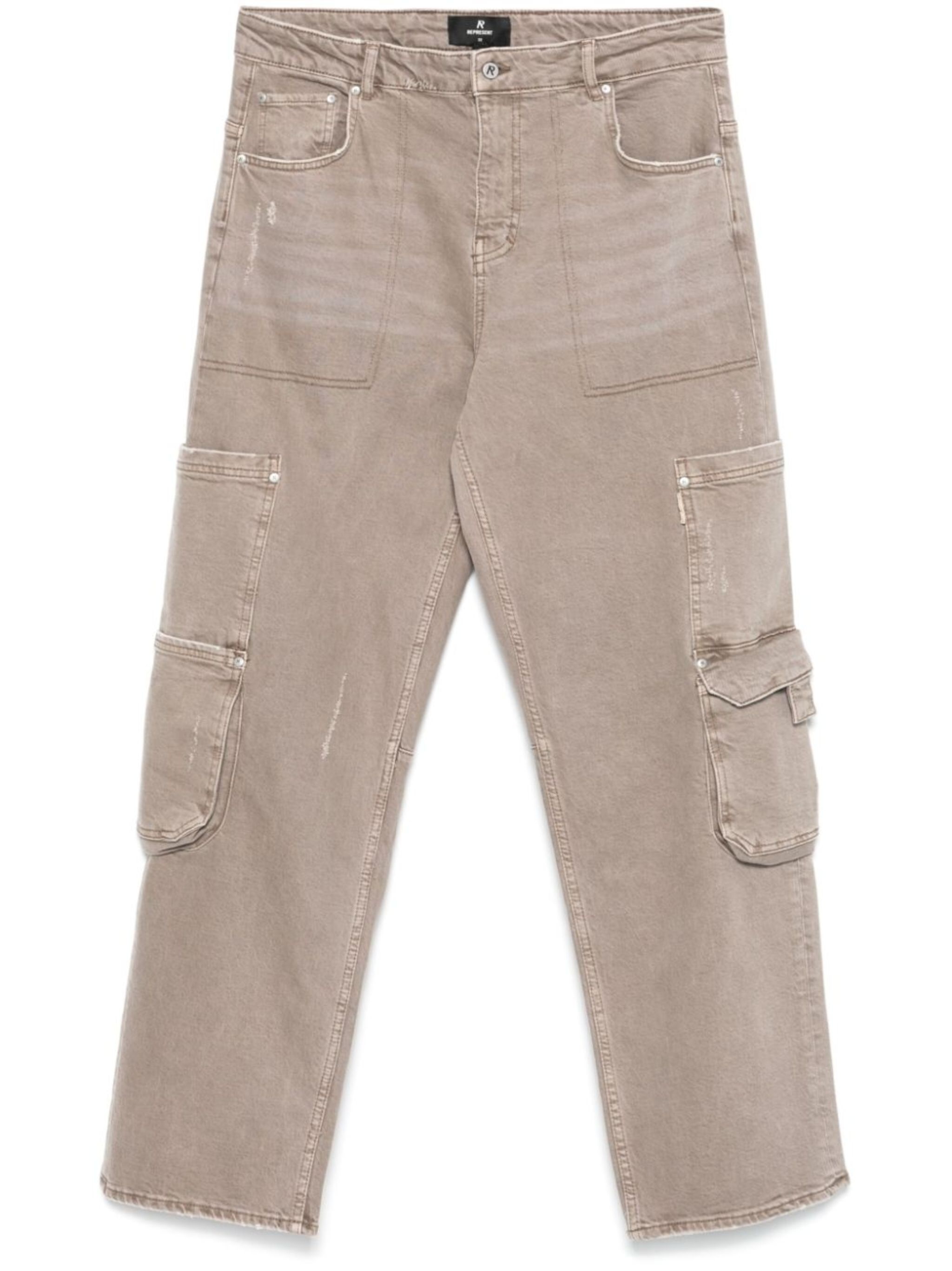 grey stretch-cotton washed denim distressed effect concealed fly and button fastening belt loops coin pocket two rounded pockets to the sides whiskering effect at the thighs three side patch pockets side cargo pocket logo plaque to the rear rear patch pocket embroidered logo to the rear straight leg Size & Fit Model Measurements: Height: 1.85 m Bust/Chest: 93.0 cm Hips: 96.0 cm Waist: 73.0 cm Model wears size 32 Fabric and Care Designer Style ID: MLM6082 Designer Colour: 049 STONE Composition: Cotton 99%, Elastane 1% Washing instructions: Machine Wash Made in Turkey