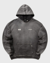 A hoodie with character, created to mark the 30th anniversary of Definitely Maybe. The back features poster-style Oasis band artwork in a tactile print—the poster appears to be peeling away to reveal the iconic Owners' Club branding. The front features a double Oasis box logo print in high density, complemented by the Owners' Club logo. Details such as a Cobrax popper at the hood hem and a metal bar from Represent on the pocket give the hoodie a high-quality finish. - Oversized fit - Poster-style Oasis artwork - Owners' Club branding - Represent metal bar logo Article number: OCM100008-04 Gender: men Color: STAINED BLACK Material: 100% Cotton