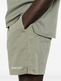 Serif shorts Highlights - Khaki - Elasticated waistband with internal drawstring - Two side zip-fastening pockets - Two rear patch pockets Imported Composition Cotton 63%, Nylon 33%, Elastane 4% SIZE & FIT Model measurements Height 6 ft 2 in(1.87 m) Bust/Chest 36.41 in(92.5 cm) Hips 37 in(94 cm) Waist 29.52 in(75 cm) FittingInformation Designed for relaxed fit, offering a comfortable loose fit over the leg The elasticated waist allows for a comfortable fit Made from a lightweight stretch fabric, this piece offers elasticity and flexibility when worn