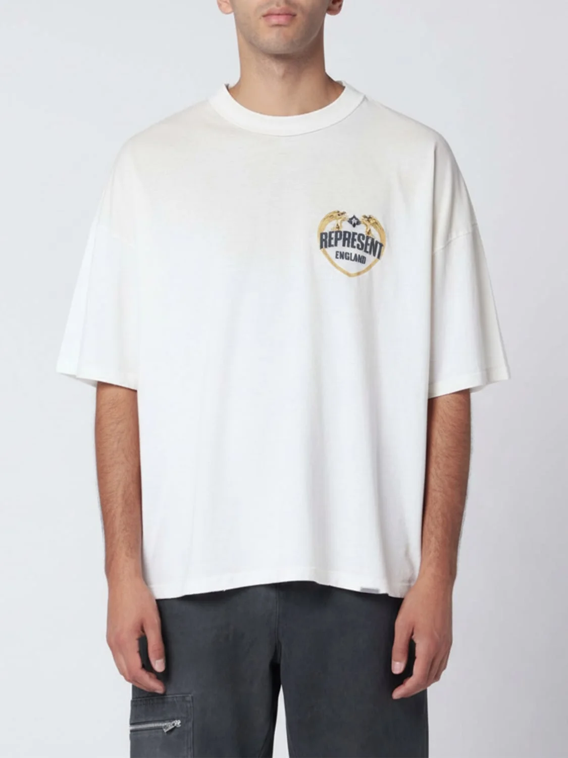 DESCRIPTION - Style: College, Sporty - Logo: Print - Model: Crewneck - Neckline: Crewneck - Shoulders: Relaxed - Sleeves: Short - Bottom: With straight hemline - Materials: Cotton - Pattern: Logo DETAILS AND CARE Composition not available SIZE AND FIT Sizes not available Size and fit Relaxed fit Designer code: MLM10017 30 Giglio Code: H75299 Designer: Represent Collection: Represent Men Category: Clothing Represent