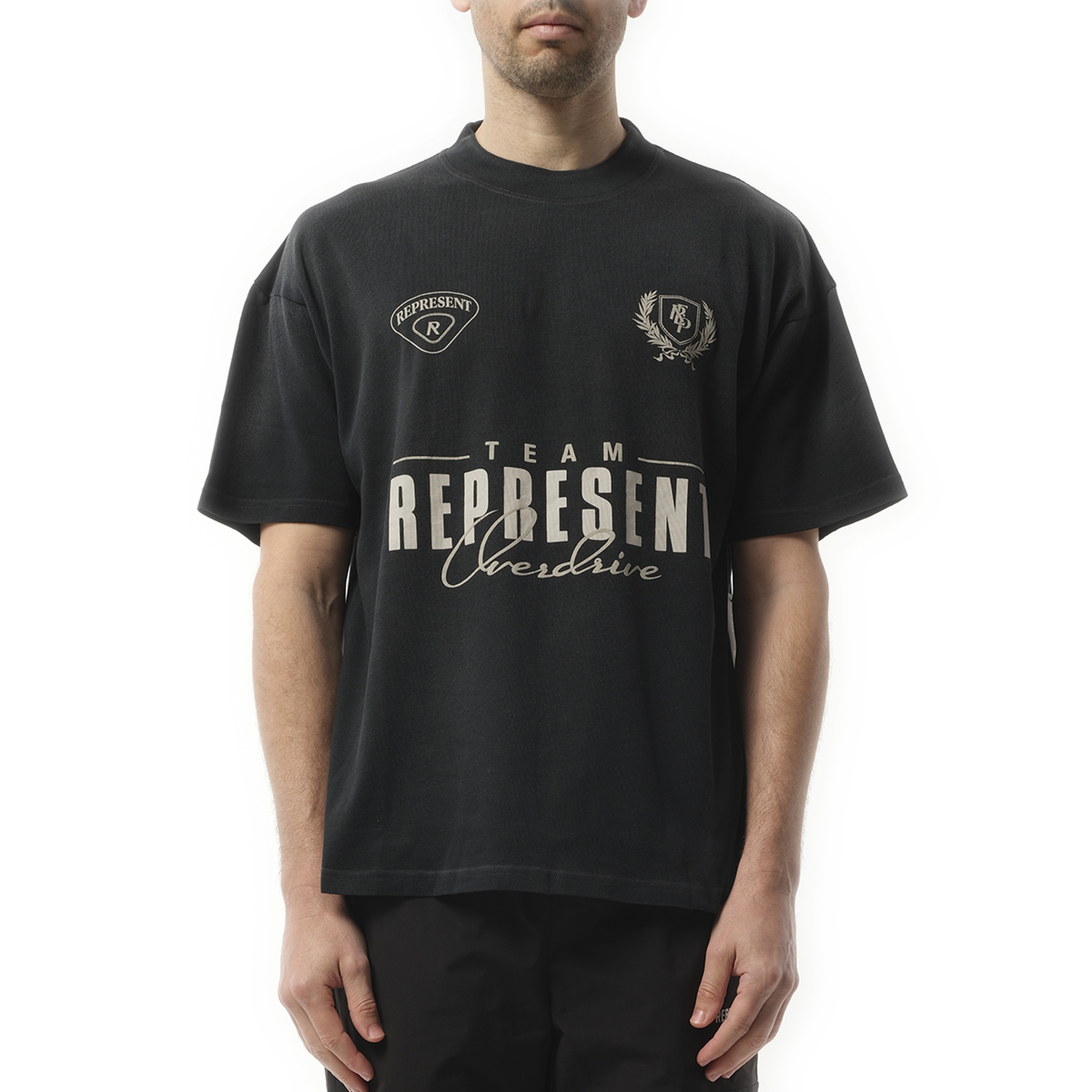 Represent's World Championship T-Shirt in Stained Black combines streetwear flair with high-quality craftsmanship. The slightly oversized fit and vintage-style graphic print make this t-shirt a unique addition to your casual wardrobe. An essential for anyone who values both comfort and bold design. - Composition: 100% Cotton - Slightly oversized fit - "World Championship" graphic on the front and back - Finished with Represent metal bar logo on the hem - Made in Portugal Model is 192 cm and wears size M. SKU: MLM41143 04
