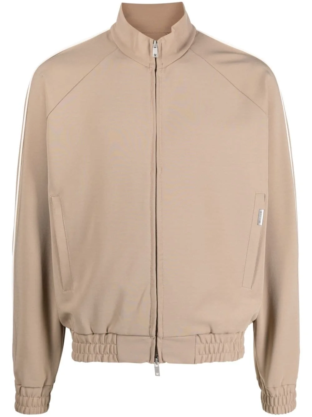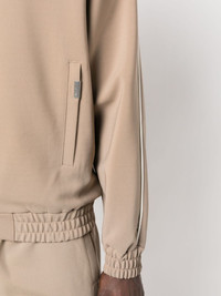zip-up sweatshirt Highlights - Sesame beige - Logo plaque - Piped-trim detailing - Stand-up collar - Front zip fastening - Long sleeves - Elasticated cuffs - Elasticated hem - Two side welt pockets Imported Composition Viscose 80%, Polyamide 14%, Spandex/Elastane 6% SIZE & FIT Model measurements Height 6 ft 0 in(1.84 m) Bust/Chest 35.82 in(91 cm) Hips 37 in(94 cm) Waist 28.34 in(72 cm) FittingInformation Designed for a relaxed fit, this piece allows for comfort and movement when worn Made from a midweight stretch fabric, this piece offers elasticity and flexibility when worn This piece fits true to size – take your usual size Washing instructions Machine Wash