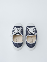 The 900F Military Trainer is a modern reproduction of Soviet Army training shoes from the 1980s, crafted using the durable vulcanized manufacturing method. It features a cotton canvas upper sourced from a historic fabric mill, and the sole is made with a vintage 1970s mold for an authentic shape and structure. Composed of high-content natural rubber, the sole is highly flexible and comfortable, allowing the shoe to be easily bent in half. - Made in Slovakia - Cotton upper / rubber sole - Available in Navy/White - EU sizing - true to size. If in between sizes, we recommend sizing up. - For smaller sizes, please check here