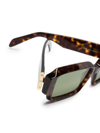 Astro rectangle-frame sunglasses Highlights - Havana brown - Acetate - Tortoiseshell effect - Rectangle frame - Green tinted lenses - Logo print at the arm - Oversize arms - Curved tips - These glasses come with a protective case. Made in Italy Composition Outer: Acetate 100% SIZE & FIT Measurement Arm Length 5.7 in(14.5 cm) Bridge Width 0.74 in(1.9 cm) Lens Diameter 2.12 in(5.4 cm) Total Width 5.7 in(14.5 cm)