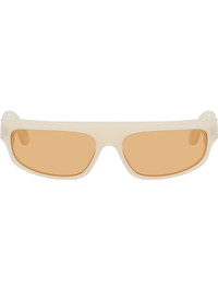 Handcrafted wraparound rectangular acetate-frame sunglasses in beige. · Orange Carl Zeiss lenses · Integrated nose pads · Inset logo hardware at temples · Exposed core wires · Silver-tone hardware · Includes pouch · Size: 63.17 130 Supplier color: Cremoso Acetate. Made in Italy 252191M134024