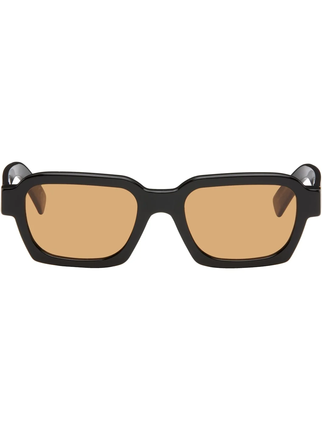 Handcrafted square acetate-frame sunglasses in black. · Brown lenses · Integrated nose pads · Inset logo hardware at temples · Gold-tone hardware · Includes pouch · Size: 52.20 145 Supplier color: Refined Acetate. Made in Italy 252191M134043