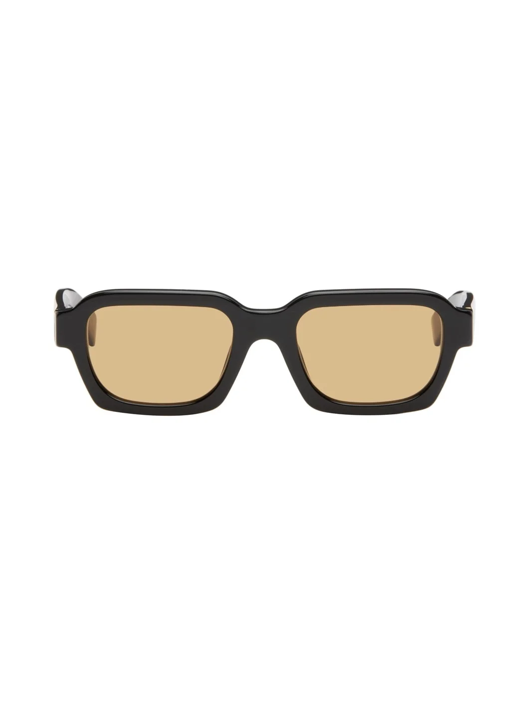 Handcrafted square acetate-frame sunglasses in black. · Orange lenses · Integrated nose pads · Logo engraved at hinges · Logo stamp at temples · Includes pouch · Size: 52.20 145 Supplier color: Refined Acetate. Made in Italy 251191M134038
