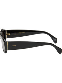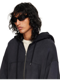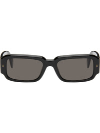 Handcrafted rectangular acetate-frame sunglasses in black. · Gray Carl Zeiss lenses · Integrated nose pads · Inset rivets at face · Logo stamp at temples · Includes pouch · Size: 55.19 145 Supplier color: Black Acetate. Made in Italy 251191M134031