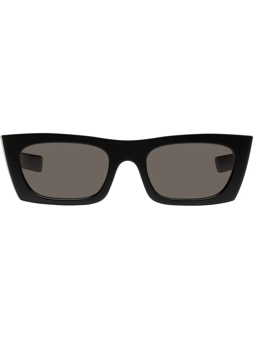 Rectangular acetate-frame sunglasses in black. · Handcrafted · Black lenses · 100% UVA/UVB protection, category 3 · Integrated nose pads · Inset logo hardware at temples · Includes pouch · Size: 53.21 145 Supplier color: Black Acetate. Made in Italy 252191M134015
