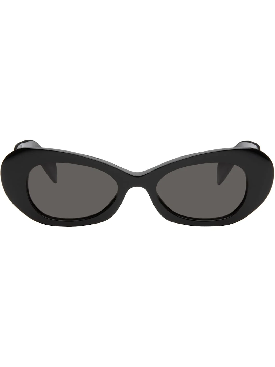 Oval cat-eye acetate-frame sunglasses in black. · Handcrafted · Black lenses · 100% UVA/UVB protection, category 3 · Integrated nose pads · Logo hardware at temples · Includes pouch · Size: 52.19 145 Supplier color: Black Acetate. Made in Italy 252191M134019