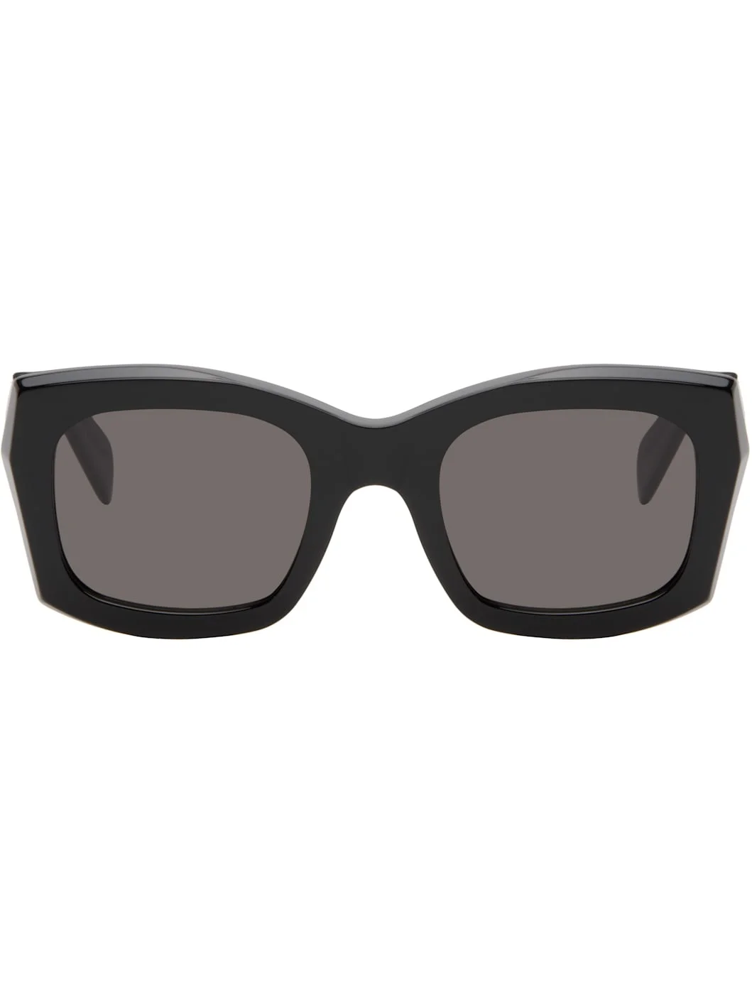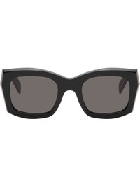 Handcrafted square acetate-frame sunglasses in black. · Gray Carl Zeiss lenses · Integrated nose pads · Inset logo hardware at temples · Includes pouch · Size: 52.24 145 Supplier color: Black Acetate. Made in Italy 251191M134026