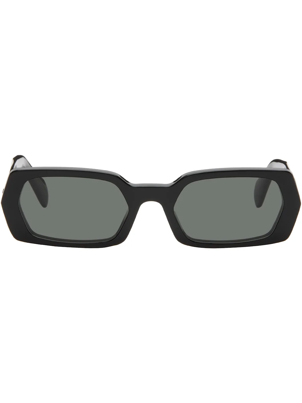 Rectangular acetate-frame sunglasses. · Gray lenses · Integrated nose pads · Logo hardware at temples · Includes pouch · Size 54.20 145 Supplier color: Black Acetate. Made in China 261191M134037