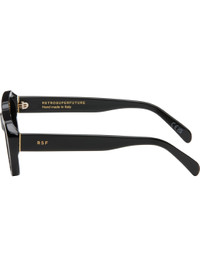 Rectangular acetate-frame sunglasses in black. · Handcrafted · Black lenses · 100% UVA/UVB protection, category 3 · Integrated nose pads · Rivets at face · Inset logo hardware at temples · Includes pouch · Size: 54.20 145 Supplier color: Black Acetate. Made in Italy 252191M134041