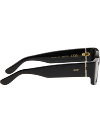 Rectangular acetate-frame sunglasses. · Gray lenses · Integrated nose pads · Logo hardware at temples · Includes pouch · Size 55.19 145 Supplier color: Black Acetate. Made in Italy 261191M134008