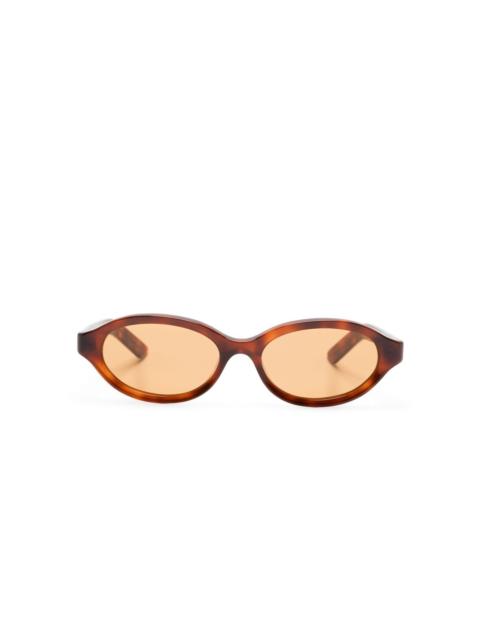 Parola sunglasses Highlights - Black - Oval frame - Tinted lenses - Logo-engraved arm - These glasses come with a protective case. Made in Italy Composition Acetate 100% SIZE & FIT Measurement Arm Length 5.7 in(14.5 cm) Total Width 5.78 in(14.7 cm) Bridge Width 0.66 in(1.7 cm) Lens Diameter 2.12 in(5.4 cm)