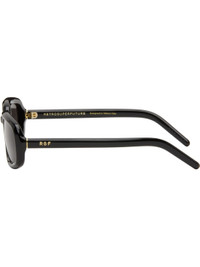 Handcrafted rectangular acetate-frame sunglasses. · Gray lenses · Integrated nose pads · Inset logo at temples · Includes pouch · Size: 57.19 140 Supplier color: Black Acetate. Made in Italy 261191M134004