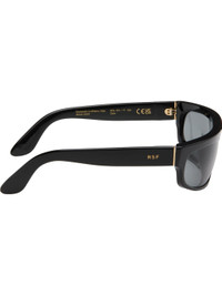 Wraparound rectangular acetate-frame sunglasses in black. · Handcrafted · Gray Carl Zeiss lenses · Integrated nose pads · Inset logo hardware at temples · Gold-tone hardware · Includes pouch · Size: 63.17 130 Supplier color: Black Acetate. Made in Italy 252191M134027