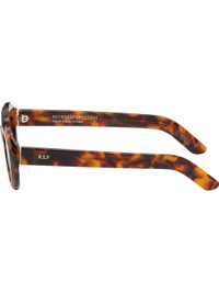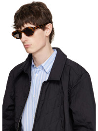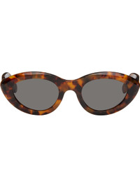 Handcrafted cat-eye tortoiseshell acetate-frame sunglasses in brown and black. · Gray lenses · Integrated nose pads · Inset logo hardware at temples · Silver-tone hardware · Includes pouch · Size: 52.23 145 Supplier color: Spotted Havana Acetate. Made in Italy 252191M134050