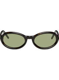 Handcrafted oval semi-transparent tortoiseshell acetate-frame sunglasses. · Green lenses · Integrated nose pads · Logo embossed at temples · Includes pouch · Size: 55.21 140 Supplier color: Havana Acetate. Made in Italy 261191M134013
