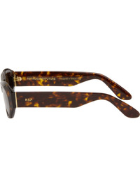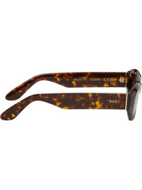 Handcrafted oval semi-transparent tortoiseshell acetate-frame sunglasses. · Brown lenses · Integrated nose pads · Inset logo at temples · Exposed core wires · Includes pouch · Size: 55.19 145 Supplier color: Burnt havana Acetate. Made in Italy 261191M134011