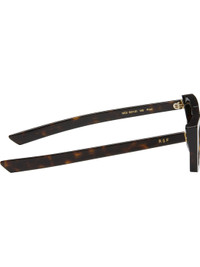 Rectangular semi-transparent tortoiseshell acetate-frame sunglasses in brown. · Handcrafted · Green lenses, category 2 · Integrated nose pads · Inset logo hardware at temples · Exposed core wires · Includes pouch · Size: 53.21 145 Supplier color: 3527 Green Acetate. Made in Italy 252191M134014