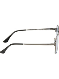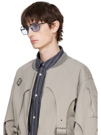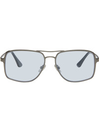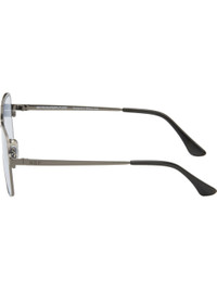 Aviator-style metal-frame sunglasses in gunmetal tone. · Blue lenses · Top bar · Adjustable rubber nose pads · Logo engraved at temples · Acetate temple tips · Includes pouch · Size: 56.15 145 Supplier color: Blue/Gun Metal. Made in China 252191M134005