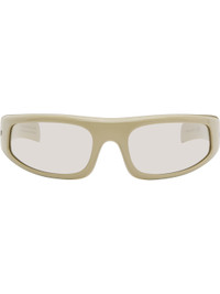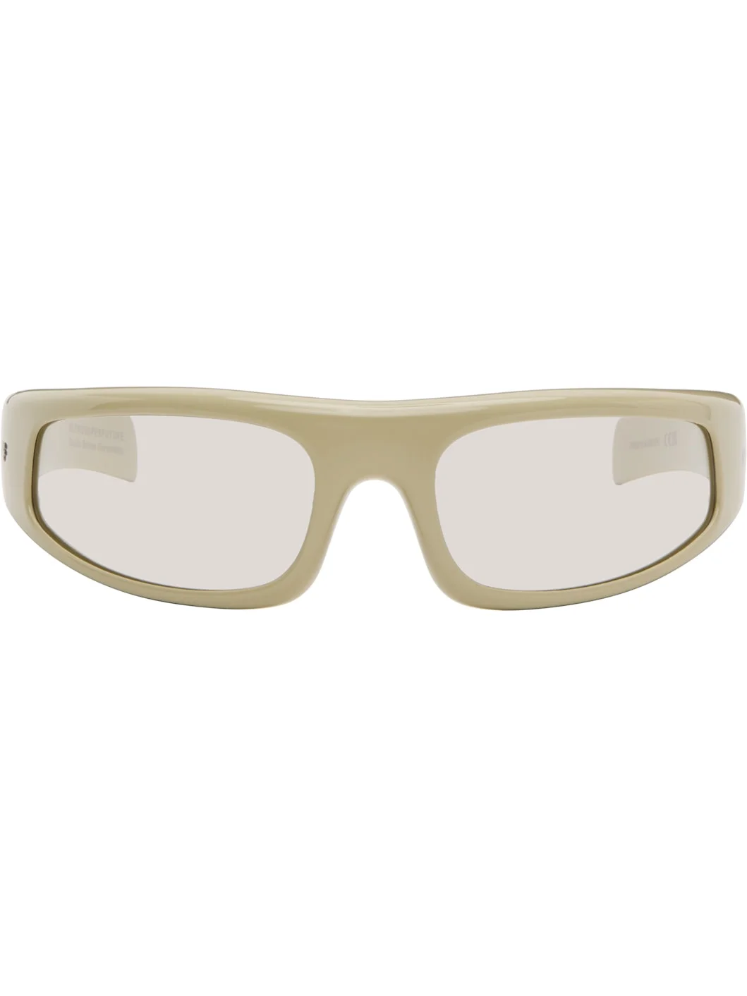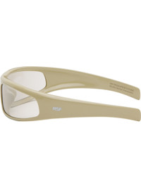 Wraparound acetate-frame sunglasses. · Brown lenses · Integrated nose pads · Fixed temples, hingeless · Inset logo hardware at temples · Includes pouch · Size 76.22 Supplier color: Cremoso Acetate. Made in China 252191M134060