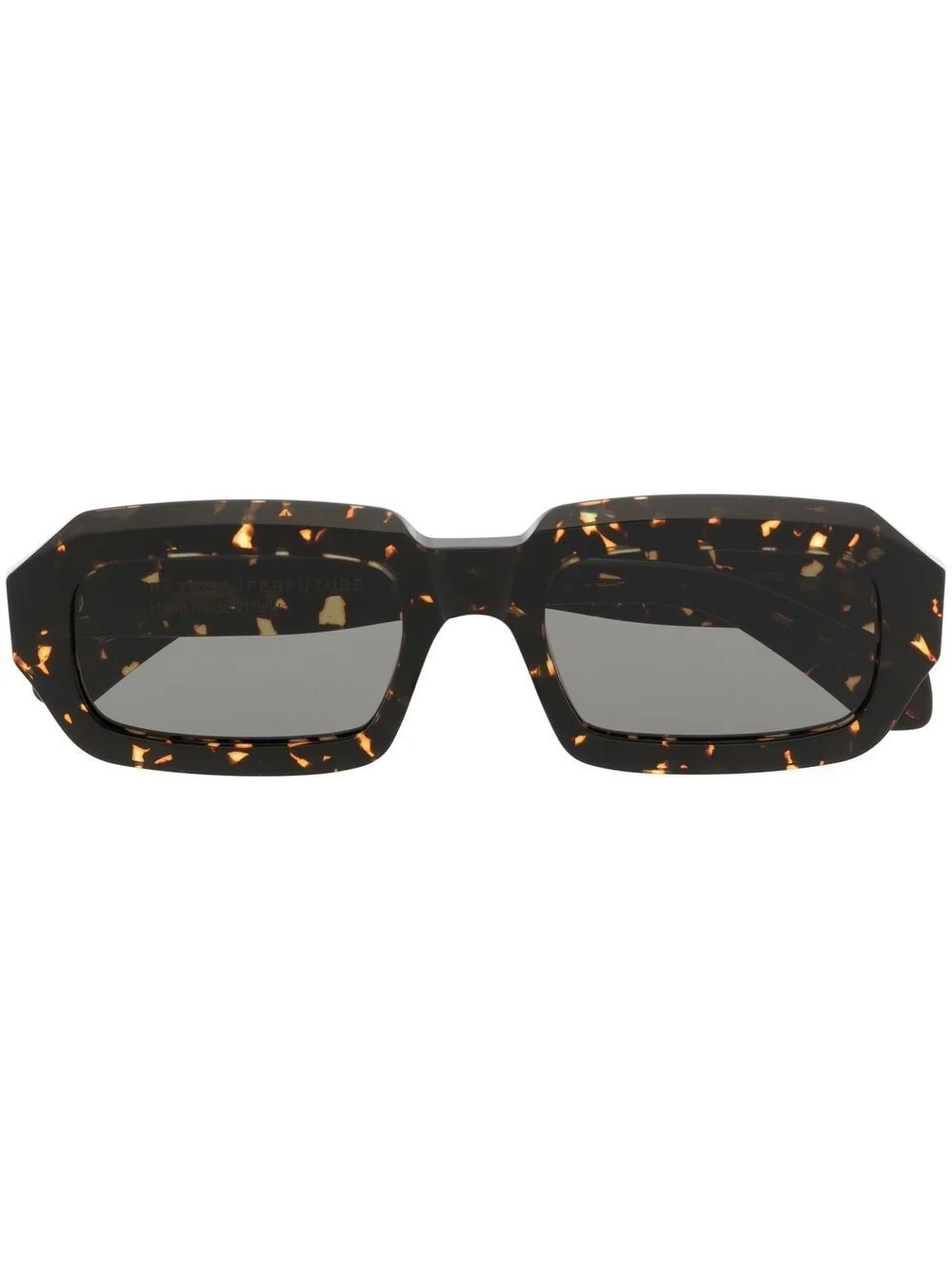 rectangle-frame sunglasses brown tortoiseshell effect rectangle frame grey tinted lenses straight arms curved tips These glasses come with a protective case. Made in Italy Composition Acetate 100% SIZE & FIT Measurement Arm Length 5.7 in(14.5 cm) Bridge Width 0.82 in(2.1 cm) LENGTH 2.12 in(5.4 cm) Total Width 5.74 in(14.6 cm)