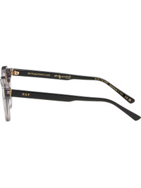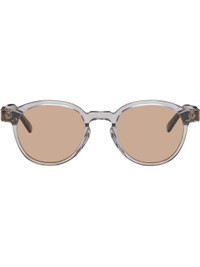 Handcrafted round transparent acetate-frame sunglasses. · Brown lenses · Keyhole bridge · Integrated nose pads · Inset logo hardware at black acetate arms · Gold-tone hardware · Includes case · Size: 49.22 145 Part of the RETROSUPERFUTURE Andy Warhol capsule collection. Supplier color: Stilo Acetate. Made in Italy 252191M134055