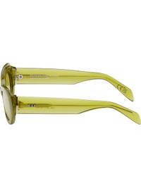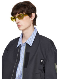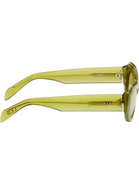 Oval semi-transparent acetate-frame sunglasses in yellow. · Handcrafted · Marbled pattern throughout · Yellow lenses, category 1 · Integrated nose pads · Logo hardware at temples · Exposed core wires · Includes pouch · Size: 52.19 145 Supplier color: Mindless Acetate. Made in Italy 252191M134018