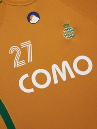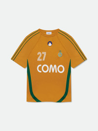 Premium tee crafted from soft, lightweight fabric. Rhude Como 27 jersey graphic showcased on the front. Features a comfortable and relaxed custom Rhude fit. The multi stripe design on the sleeves adds a sporty touch to this classic short sleeve. 100% COTTON JERSEY