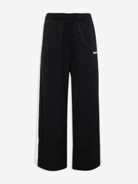 Timeless track pant, tailored for women with a touch of contemporary flair. Solid white stripes elegantly contrast the each of the legs. The pant is finished with a chic cropped hem, offering a modern silhouette that effortlessly blends style and comfort. Showcases a distinctive rubber logo on the front. This subtle yet statement-making detail adds a touch of brand identity, enhancing the overall aesthetic. 100%POLYESTER / 100%POLYESTER Dry clean only. CARE INSTRUCTIONS Standard fit. We recommend taking your standard size.