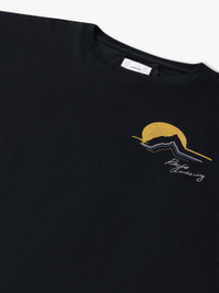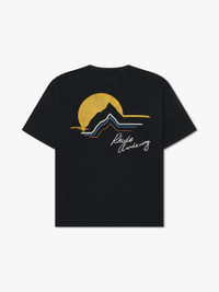 Custom-vintage fit cotton tee shirt with a ribbed neckline and short sleeves. Features RHUDE Awakening mountain designs printed on front and back. CARE INSTRUCTIONS 100% COTTON DRY CLEAN ONLY WE RECOMMEND TAKING YOUR STANDARD SIZE