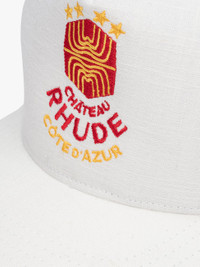 Heavyweight linen hat with "Rhude - Cote D'Azur" inspired designs embroidered on the front. Features an adjustable strap at the back, so you can adjust the fit to your preference. Brim measures approx 2.5" in length SELF:100% LINEN UNDER BRIM: 65% POLY 35% COTTON Spot clean with distilled soapy water. One size fits all.