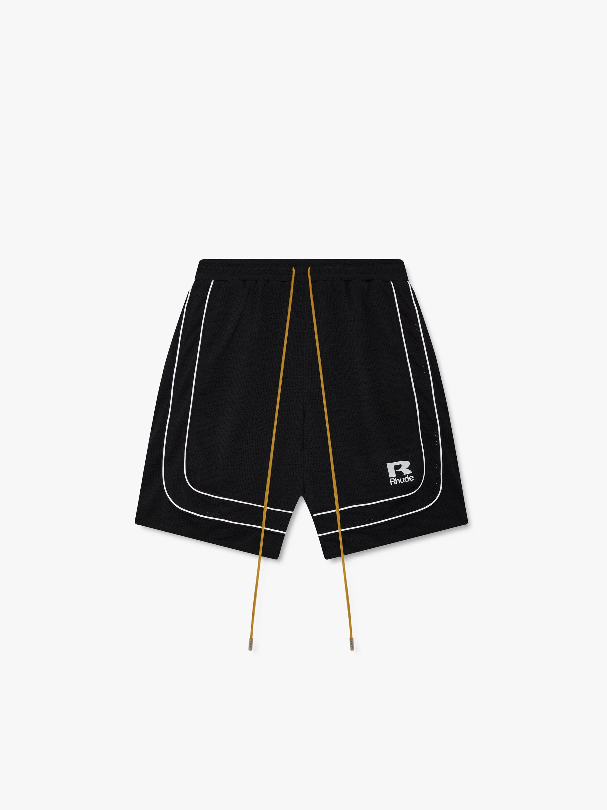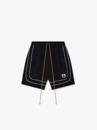 Premium baggy basketball short features signature piping and side pockets. Extended drawstrings in our signature mustard tone. SELF: 100% POLYESTER LINING : 84% NYLON, 16% SPANDEX