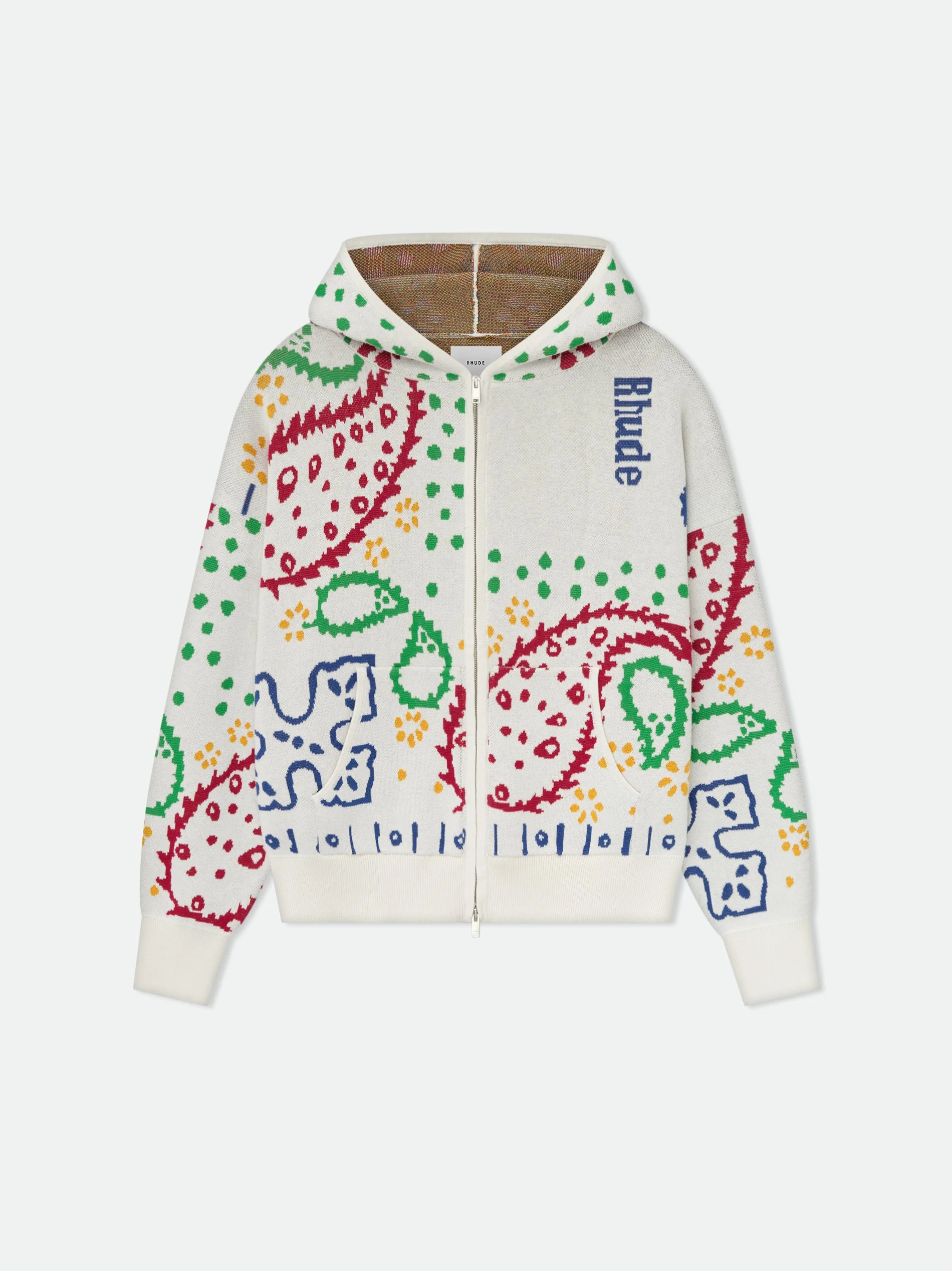 MULTI BANDANA KNIT ZIP UP HOODIE
