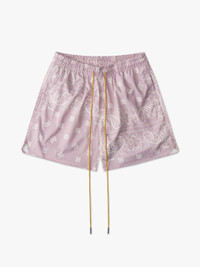 Premium bandana swim shorts f eaturing an elasticated waistband, twin side pockets, and singular back pocket. Exaggerated front drawstrings in our signature Mustard tone. CARE INSTRUCTIONS 100% Nylon Wash in Cold Water on Gentle cycle using a bleach-free detergent. SIZING Standard fit. We recommend taking your standard size.